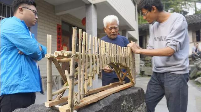在為中村設(shè)計(jì)小橋之初,設(shè)計(jì)師們想到了因地制宜,打算利用當(dāng)?shù)刎S富的竹林資源建造一座純竹結(jié)構(gòu)的人行橋。不僅如此,他們的設(shè)計(jì)方案必須要和當(dāng)?shù)氐墓そ硡f(xié)商,才能把工匠經(jīng)驗(yàn)變成設(shè)計(jì)環(huán)節(jié)的一部分。這個(gè)項(xiàng)目的建造一共分為兩個(gè)階段。前期是走訪調(diào)研和設(shè)計(jì),和老竹匠了解當(dāng)?shù)氐淖龇ê褪┕すに嚕瑫r(shí)進(jìn)行針對(duì)性的設(shè)計(jì)。設(shè)計(jì)師希望,這座橋能夠取材自然、邏輯簡(jiǎn)單、功能明確、形態(tài)有力。他們最初一共提出了四個(gè)設(shè)計(jì)方案,在與 84 歲的老竹匠師傅俞國(guó)治溝通之后,最終選擇了形式感較強(qiáng)、師傅也比較熟悉的拱橋結(jié)構(gòu)。